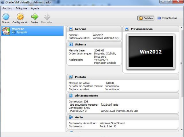 Una vez realizada la instalación vamos a crear una máquina virtual con la ISO de W2012
