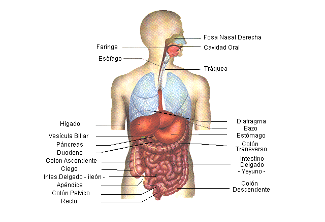 Eso´fago ,Esto´mago, Pa´ncreas, Higado, Bazo, Intestino Delgado, Intestino Grueso