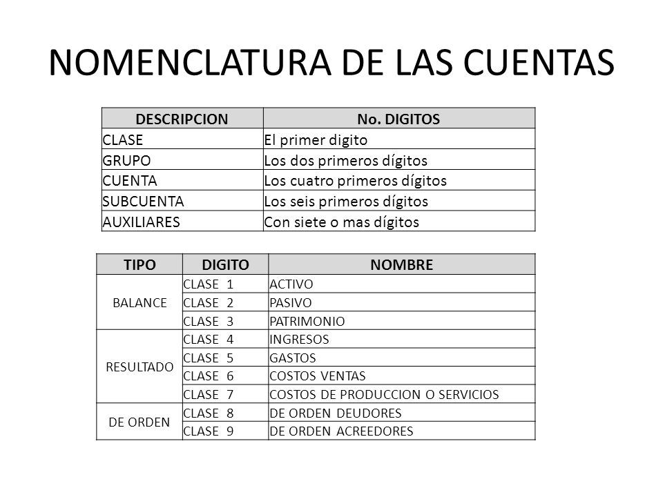 Las clases 1, 2 y 3 comprenden las cuentas que conforman el balance general