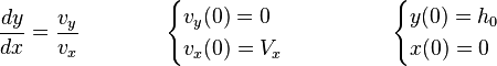 ecuación de la trayectoria en coordenadas cartesianas viene dada por: