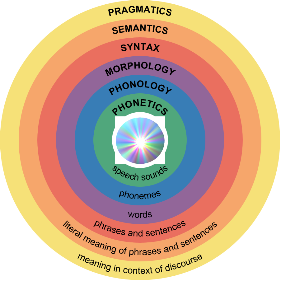(phonology, morphology, syntax, semantics, and pragmatics) found across languages.
