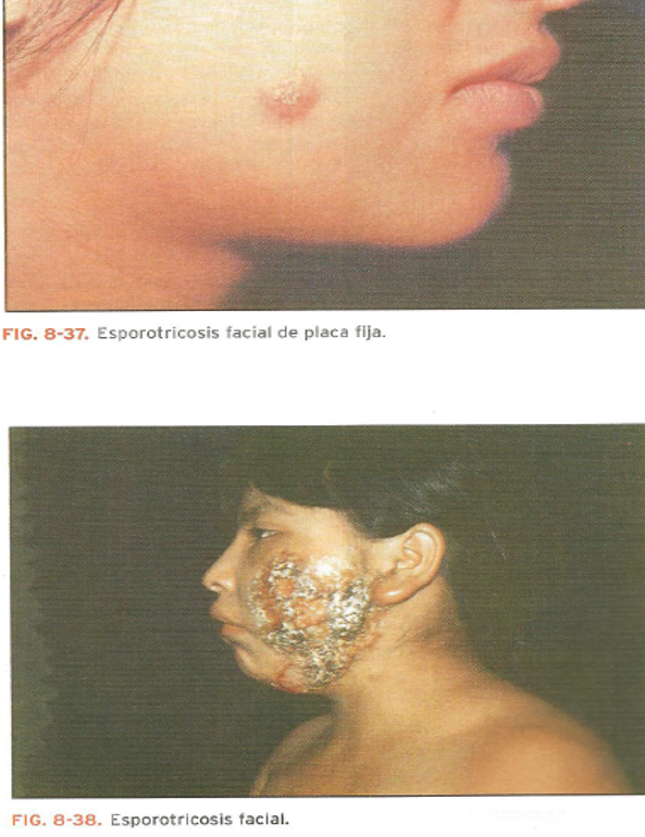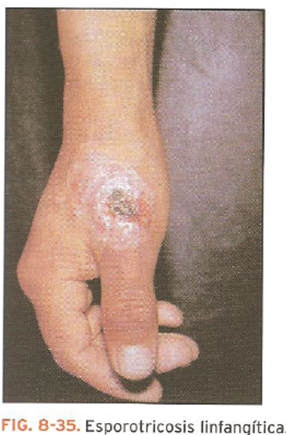 Evolución: chancro esporotricósico en sitio de inoculación (poco o s/dolor, persiste así por 2-3