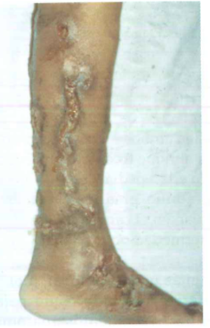 poco pruriginosas, avanza x linfáticos superficiales, se extiende extensamente en nalgas o