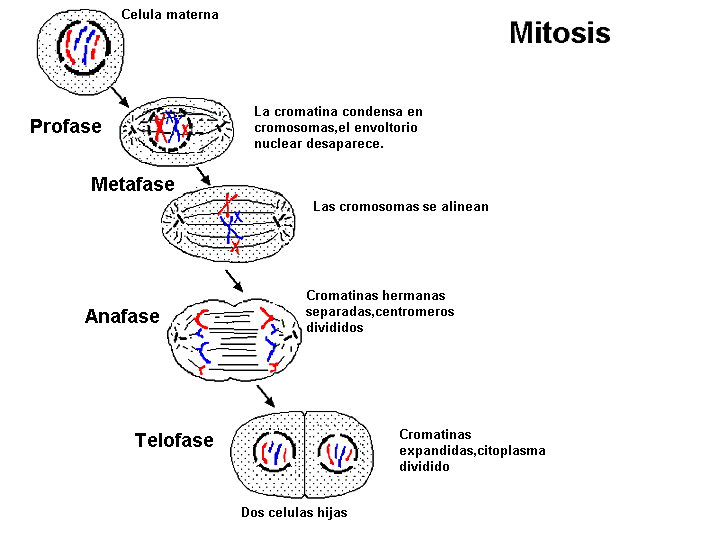 La celula que se divide se llama celula madre y la que se forma celulas hijas