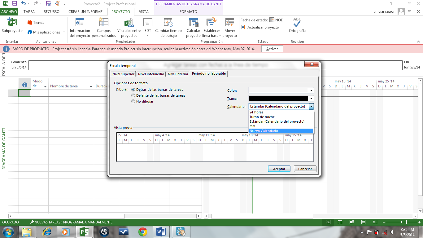 FORMULARIO DE CALENDARIZACION DE UN PROYECTO