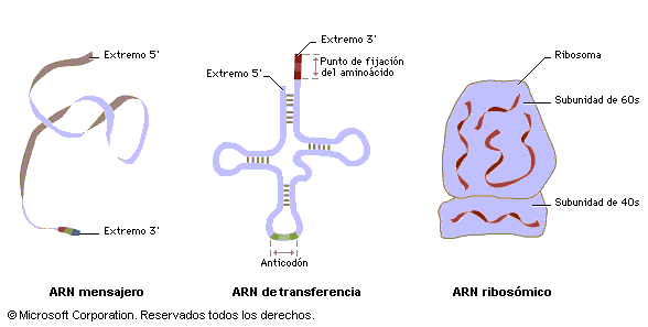 de doble hélice. Hace de maquinaria en la síntesis de proteina. Forman ribosomas.