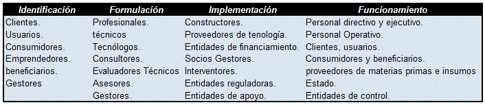 Aunque en cada fase del proyecto intervienen actores diferentes, quienes identificaron la idea y desean sacarla adelante, asumen