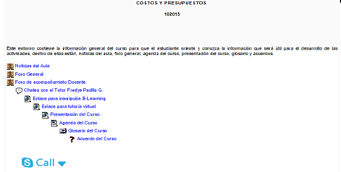 Noticias, foros, agenda del curso, Chat, Glosario y Acuerdo.