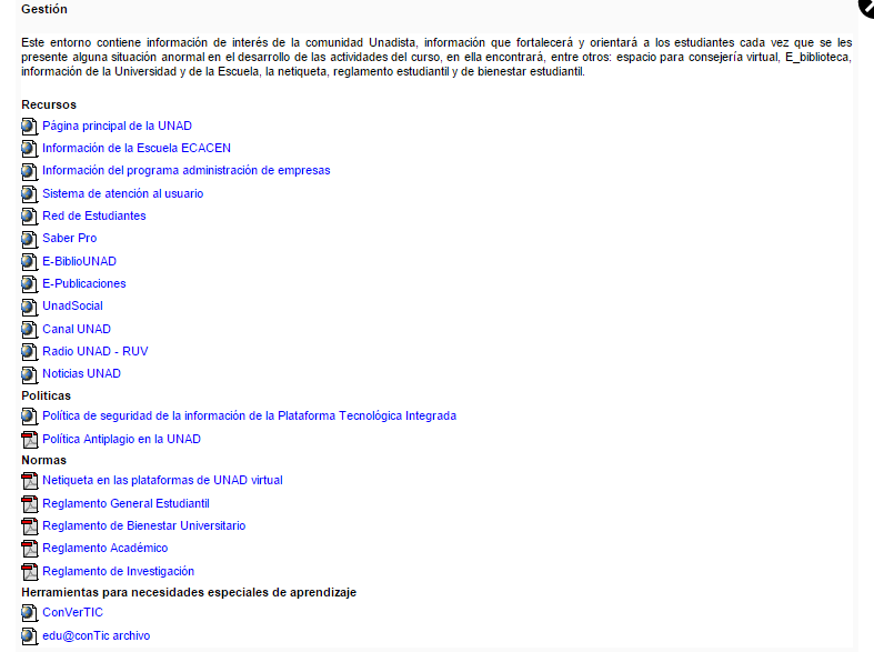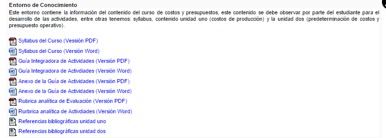 acerca del contenido del curso en campus, entornos, syllabus, guía y anexos de la guía, agenda,