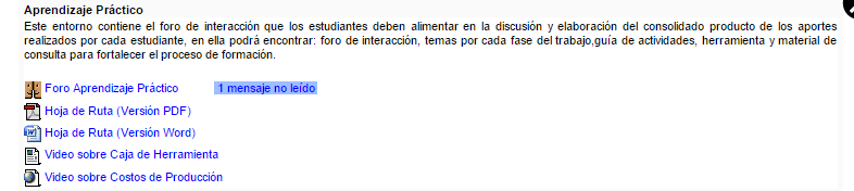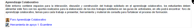 referencias bibliográficas, foros de aprendizaje colaborativo y practico, es decir, relacionar el