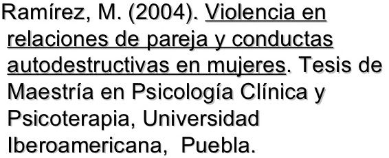 Apeliido A. A. (año) "Título" Tesis de (grado académico). Institución de egreso.