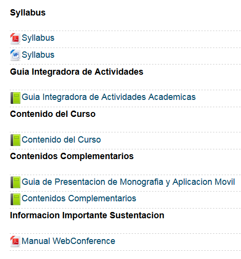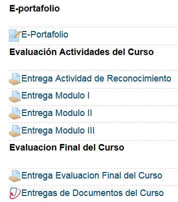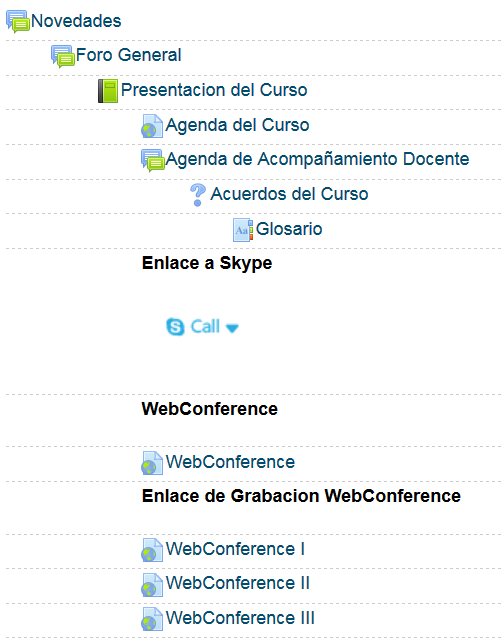 es decir la estructura didactica del curso, los enlaces de los contenidos del curso, en este entorno