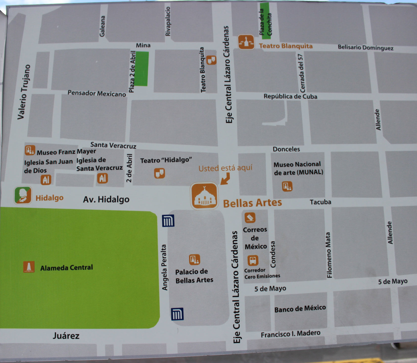 Mapa mental en el cual se explican las diferentes formas de clasificación de las señalizaciones, ejemplificando con fotografías de diferentes señales ubicadas en el Centro Histórico de la Ciudad de México