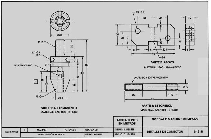 tratamiento térmico acabados, tolerancias, números de piezas, y