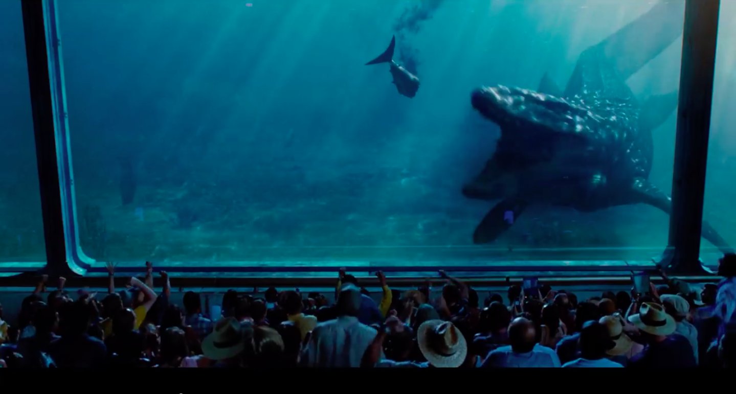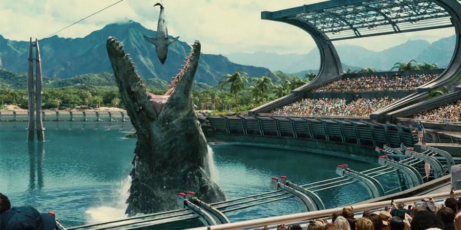 en la película se muestra como alimentan a un dinosaurio con un tiburón
