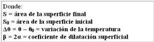 Ocurre de forma análoga a la de la dilatación lineal, por lo que tenemos: