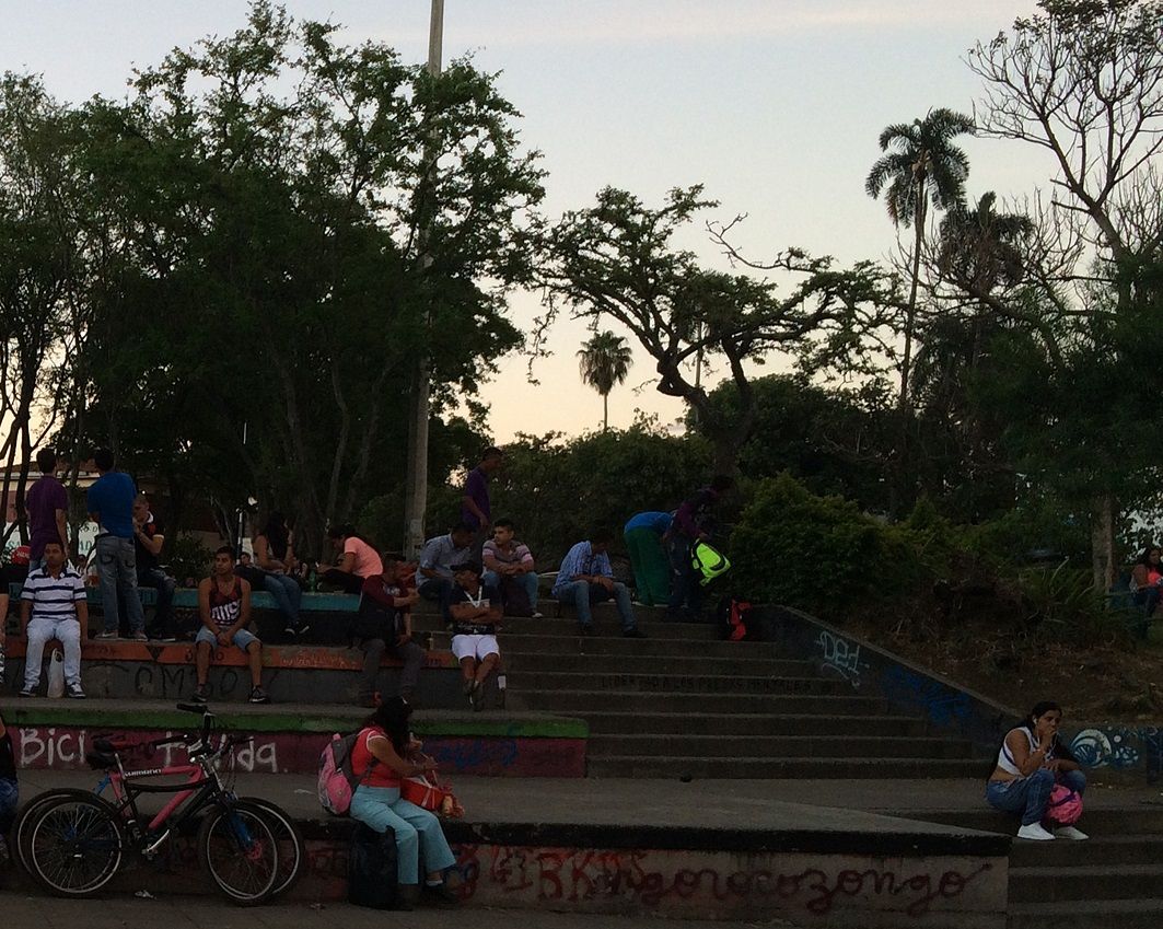 Esta persona junto con sus otros compañeros se apoderan de la plazoleta que esta en la parte superior del parque.