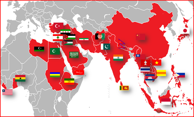 Grandes Potências lançadas aos continentes asiático, africano e oceânico
