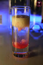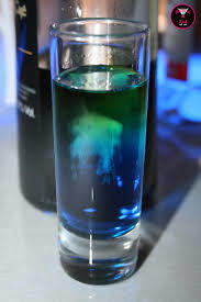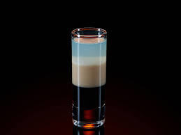 CURACAO AZUL, VODKA, UNA CAPA DE ADSENTA Y LECHE DESNATADA