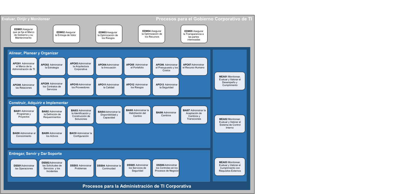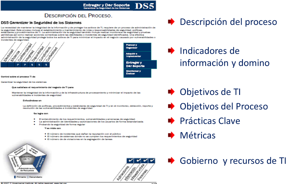 COBIT define las actividades de TI en un modelo de 37 procesos genéricos agrupados en 4 DOMINIOS