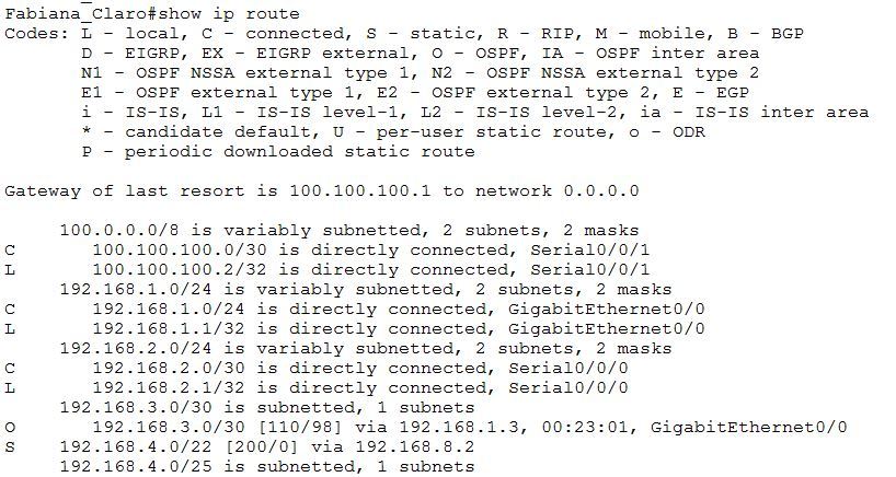 Comando (config)# ip route network-address subnet-mask {ip-address | interface-type interface-number [ ip-address ]} [ distance ] [ name name ] [permanent ] [ tag tag ]