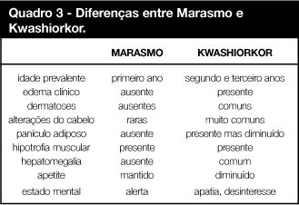 *Em casos de dúvida entre Kwashiorkor e nefropatias solicitar exames de urina