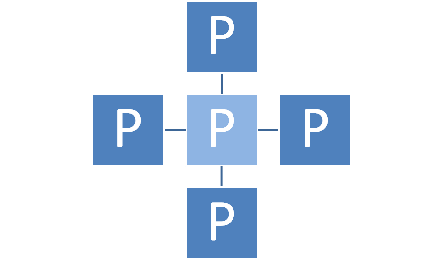 Peer-to-peer (p2p): En una red p2p, no hay servidores