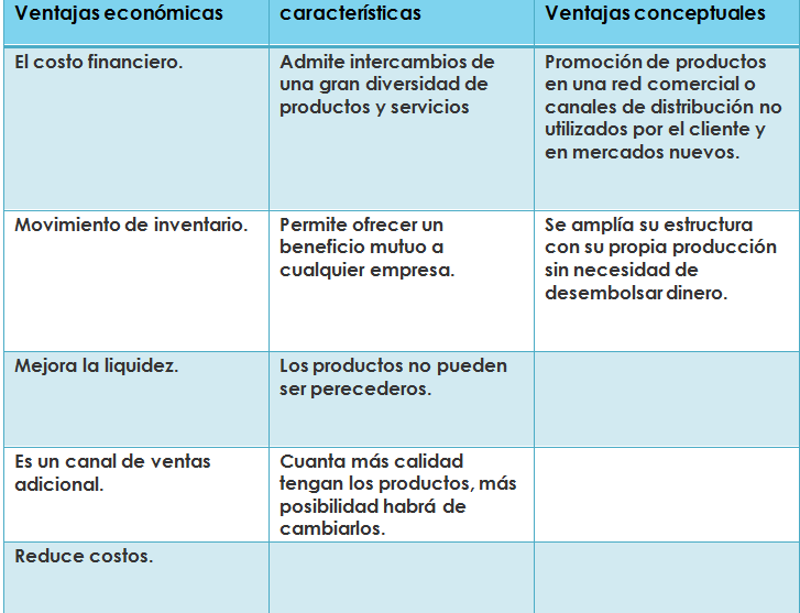 Concepto de trueque: es el intercambio de un producto por otro de costos similares.