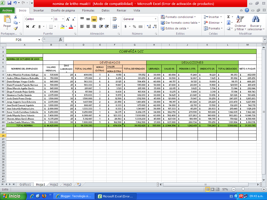 LOGRO 1: REALIZARÁ Y DILIGENCIARÁ FORMATO DE NÓMINA, EJERCICIOS