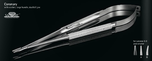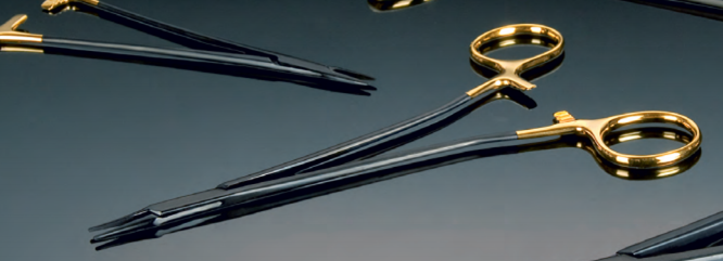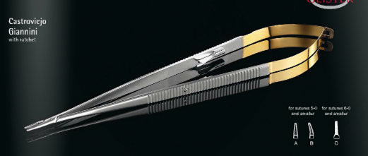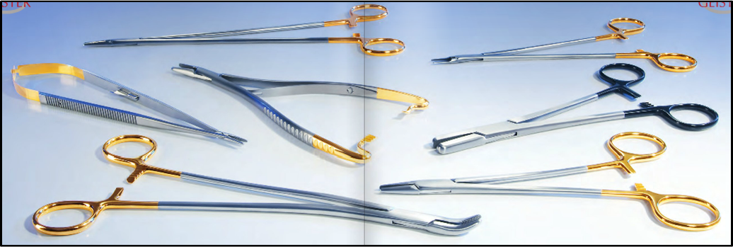 PORTA AGUJAS VASCULAR MANGO DORADO: aproximar tejidos delicados profundos