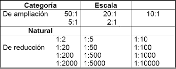 reducción: escala en la cual la relación es menor que 1:1. Se