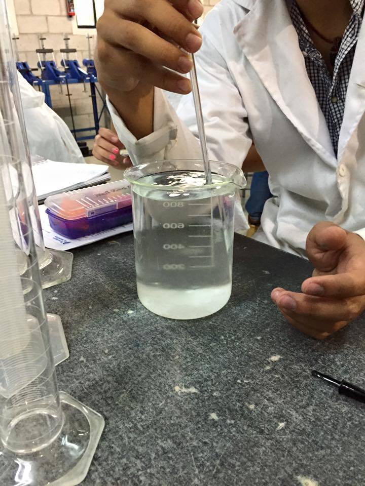 Colocar en la batidora el material y agregar 125 ml de hexametafosfato