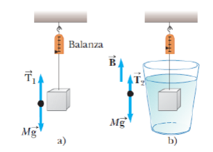 Cuando el objeto se suspende de una balanza deresorte y se sumerge en