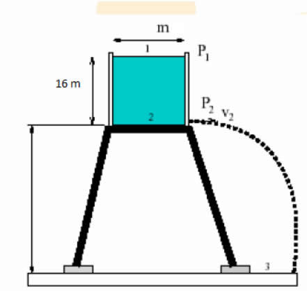Un gran tanque de almacenamiento, abierto en la parte superior y lleno con agua, en su costado en un punto a 16 m abajo del nivel de agua se elabora un orificio pequeño. La relación de flujo a causa de la fuga es de 2.50 x 10-3 m3 /min. Determine a) la rapidez a la que el agua sale del orificio y b)el diámetro del orificio