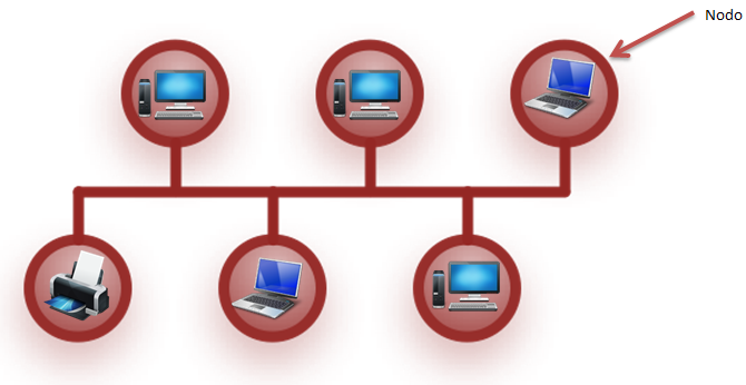 En este tipo de red, la conexión se forma cuando las computadoras están conectadas por un único segmento de cable, a diferencia del anillo, el bus es pasivo, no se produce regeneración de las señales en cada nodo.