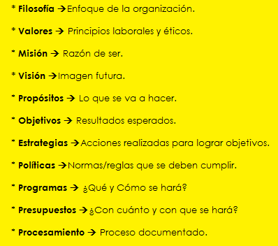 Lineamientos generales, altos directivos y mediano y largo plazo.