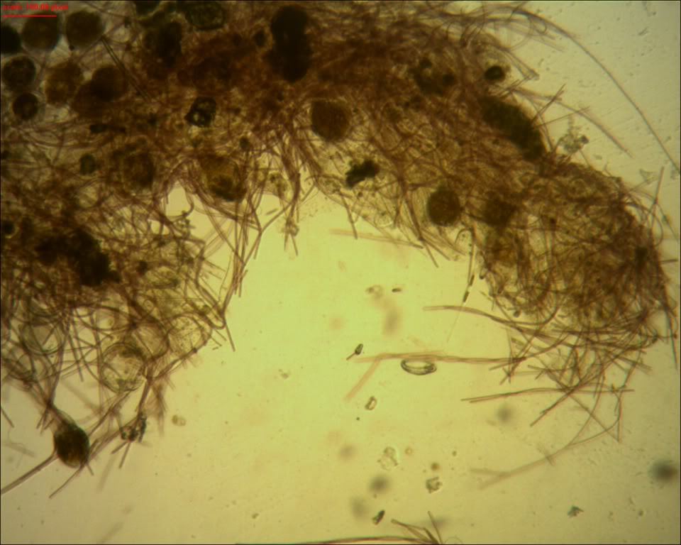 Las algas se observaron con lente 4x y pudimos ver protistos