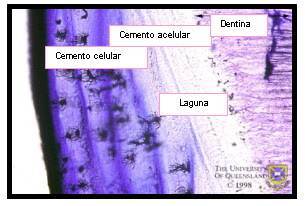 aunque en ocasiones puede extenderse sobre el esmalte en la región cervical. Este tejido no está
