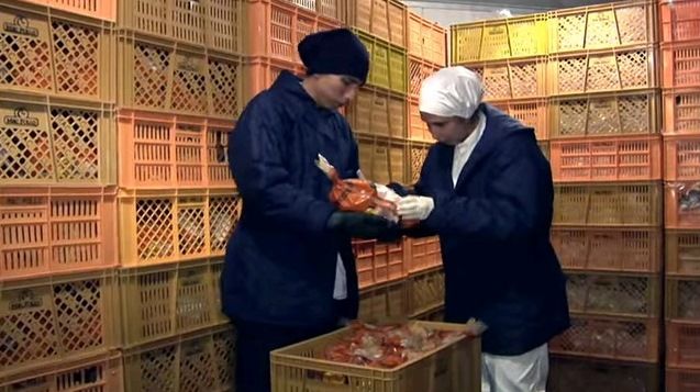 Recolección de aves en la granja