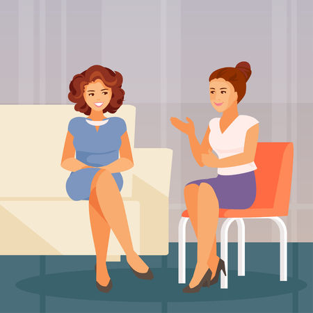 111932429 Dos Amigas Sentadas Y Hablando Soporte Y Comunicación Ilustración Vectorial (image/jpeg)