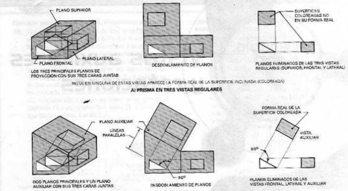 plano de proyección.A estas superficies se les llama superficies inclinadas o sesgada las vistas