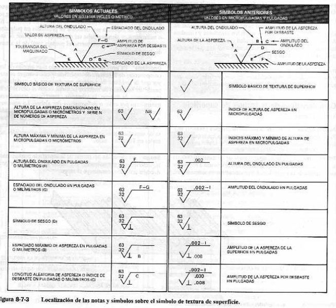 dibujos técnicos para indicar la textura de las superficies. No se deben tomar como reglas para la