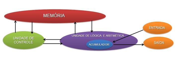 -Unidade de Controle (UC), Unidade Lógica e Aritimética (ULA), Memória, Entrada e saída, Registradores