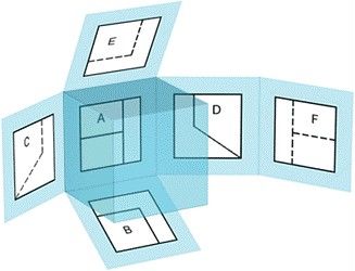 Vistas principales, auxiliares, determinación de vistas inferiores, superiores, lateral izquiera, lateral derecha posterior e inferior