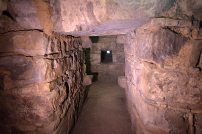 edificios, terrazas, plataformas, túneles, plazas, etc.; construida íntegramente de granito. Entre