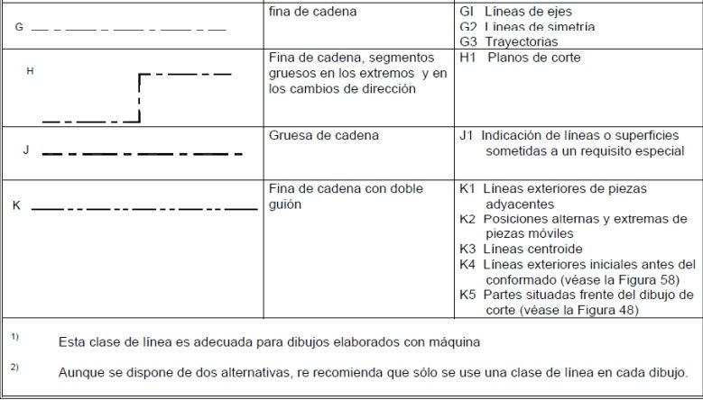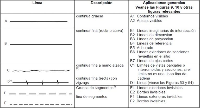 Tipos de líneas: Se deben usar los siguientes tipos y El espacio