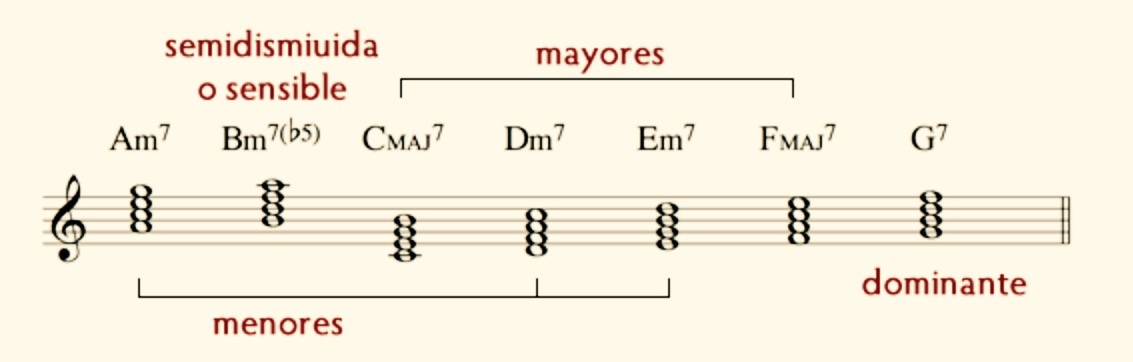 Formado por un acorde de triada menor (3ª m y 5ª J) con la 7ª menor a partir de una nota dada (fundamental)
