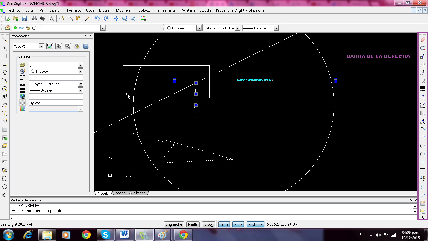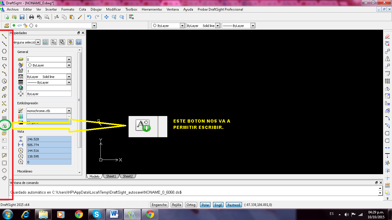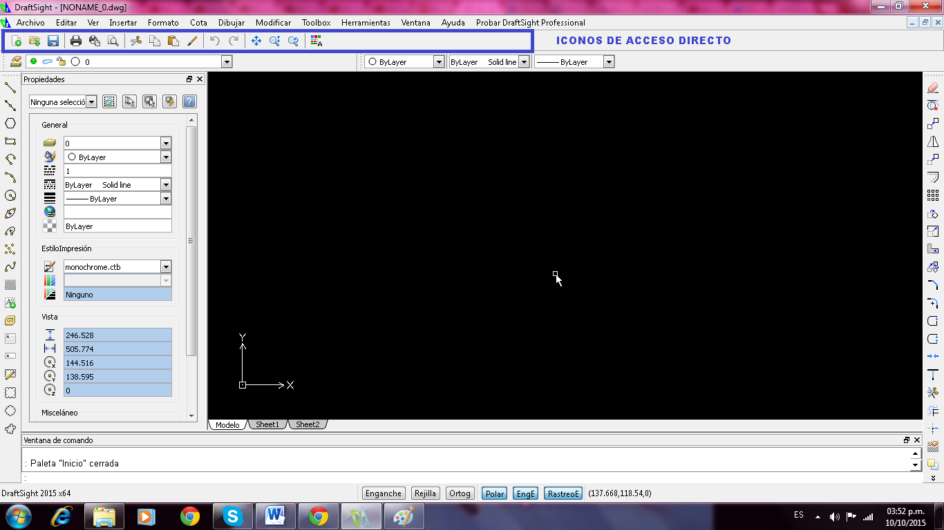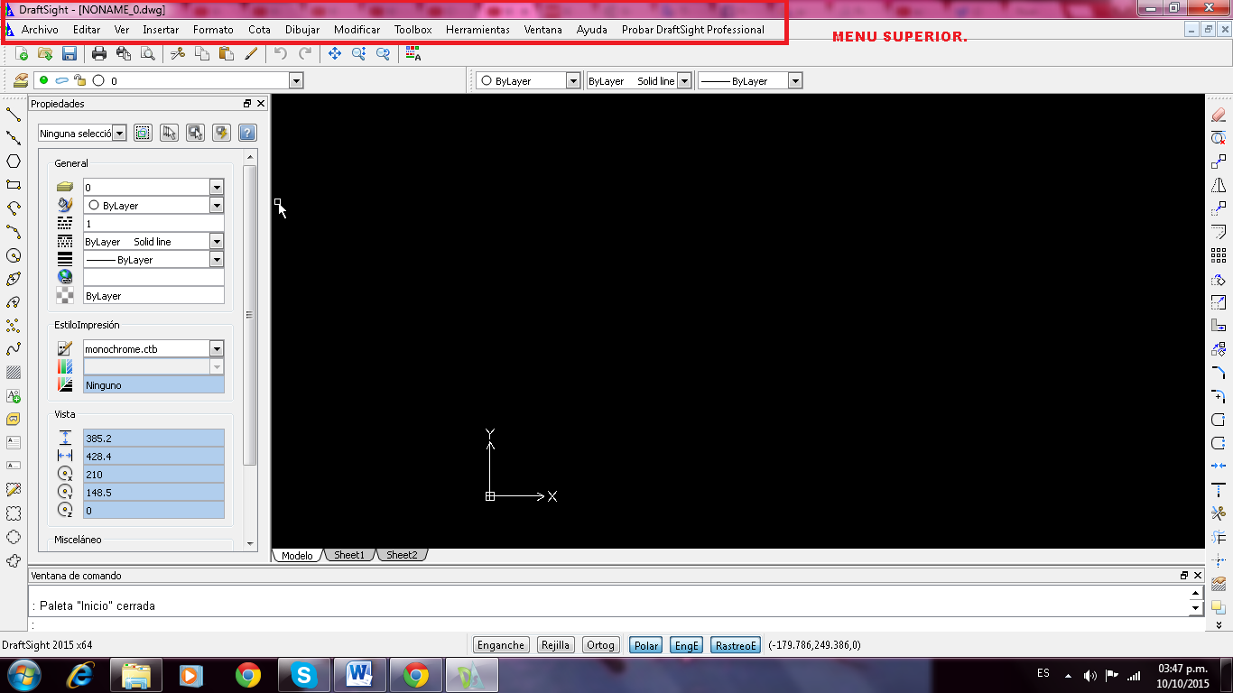 Dibujar,Capas, barra de herramientas Propiedades, la zona de