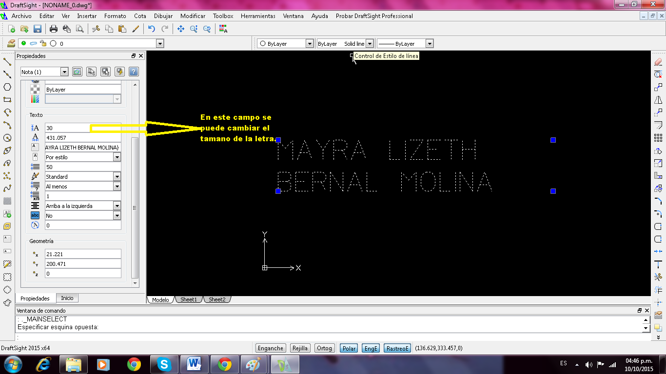 seguido de esto debemos especificar las dimensiones con la herramienta