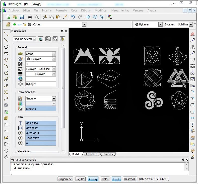 Uso de capas, Coordenadas cartesianas, Comandos en